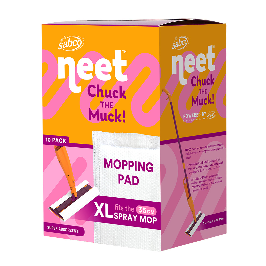 Always ready, just spray and go - tackle life's messy moments with the Sabco Neet XL Spray Mop! Clever mop pads are designed TRAP & LIFT dust, hair and dirt to remove the muck and leave floors sparkling - now that's Neet!